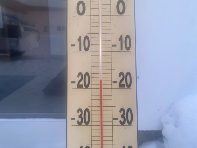さて今朝、会社の寒暖計を見ると・・・